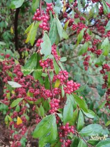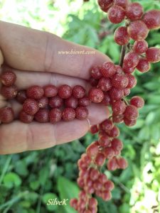 Ovaj zanimljivi grm dozrijeva krajem ljeta/početkom jeseni, dajući obilje sitnih crvenih bobica. Plodovi su jarko crvene boje s karakterističnim točkama. U početku su kiselkasti i trpki, no kako sazrijevaju, postaju sve slađi i aromatičniji. Postoje čak i posebni kultivari s većim i slađim bobicama.
